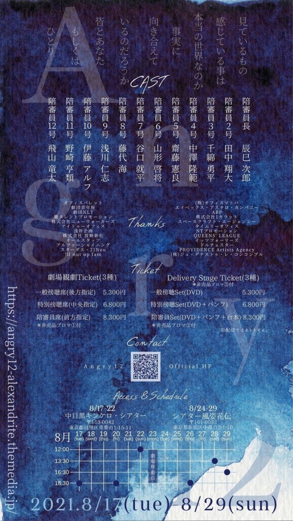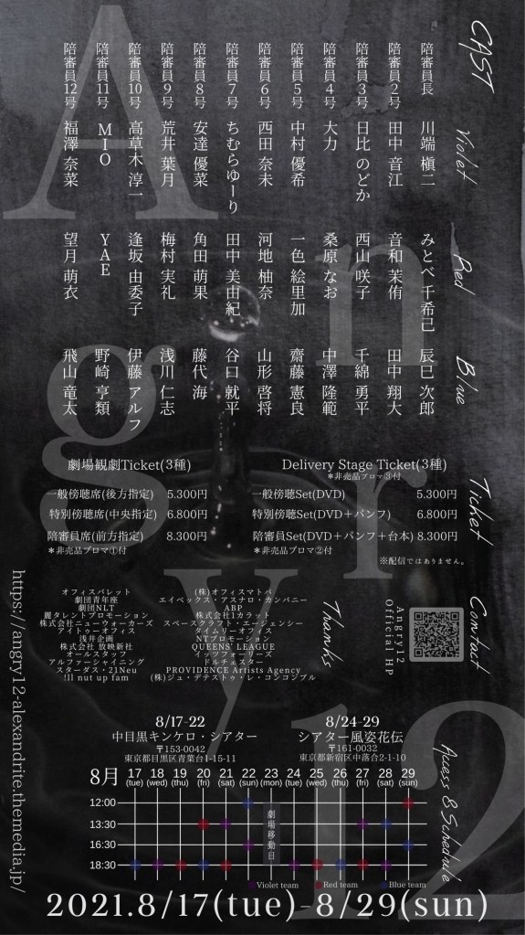 Alexandrite Stage作品『Angry12』Blueチームの演出を務めることとなりました。